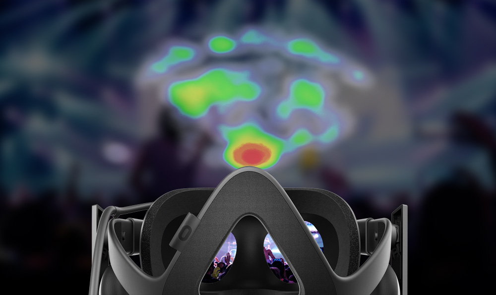 A heatmap is an analytical tool used to show what a user is looking at within a VR experience, graphical interface etc., It uses a system of color-coding, usually ranging from red (“hot”) to blue or green (“cold”), to create a graphical representation of the focus of the user’s attention. In the context of websites, heatmaps identify areas of interest by measuring cursor movement or clicks, while heatmaps in VR usually map the patterns of the user’s gaze.