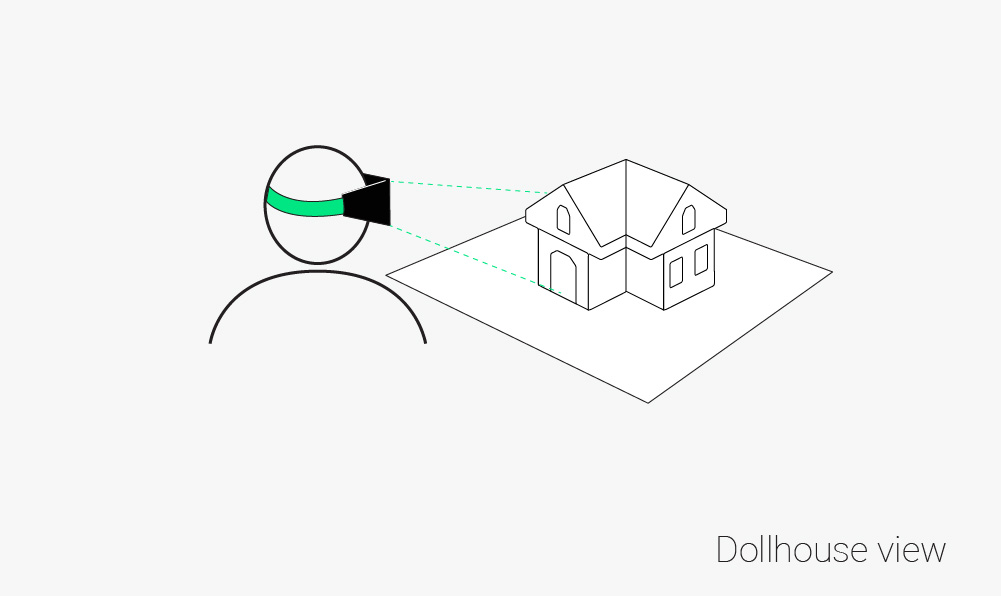 A dollhouse view refers to a zoomed out, usually top-down view of a given 3D space or structure from the outside. It enables designers to observe the entire area without moving around and view computer-modeled designs in their entirety before physical prototyping begins. This makes finding defects or errors much less labor-intensive and provides the viewer with a good idea of how something will look once built.